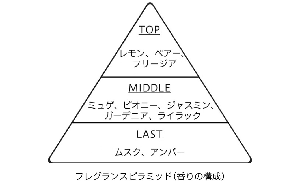・透明感のあるやわらかなピュアホワイトフローラルの香り。